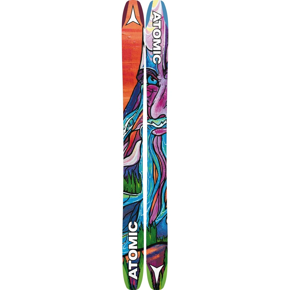 The Atomic Bent Chetler 120 is Chris Benchetler’s signature ski and the big brother of the Bent ski family. This pillow-bashing, powder-slashing machine features topsheet and base art by the man himself. With construction and shaping designed and refined by Chris Benchetler since 2008, the latest iteration redefines what’s possible in big mountain terrain. Dura Cap Sidewall construction combined with revolutionary HRZN Tech offers more surface area in the tip and tail for better tracking through chop and crud with less tip deflection. The Light Woodcore shaves weight while the Carbon Backbone adds strength and stiffness. The Powder Rocker profile offers the perfect amount of tip and tail turn-up, and camber under foot delivers epic performance through deep turns, side hits, and nose butters.